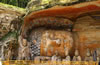 石刻以佛教造像為主,兼有儒、道造像。具有石窟造像的特征,屬于石窟藝術的范疇。早期的“廟宇殿堂”式結構,完全是摩崖造像,如大佛灣造像全都裸露在外,與山崖連成一片,給人一種非常直觀的感覺。突破了一些宗教的約束,使造像更具人性化。雕刻形式有圓雕、高浮雕、淺浮雕、凸浮雕、陰雕五種,但主要以高浮雕為主,輔以其他形式。不僅有不計其數(shù)的各階層人物形象,以及眾多的社會生活場面,而且還配有大量的文字記載,是一幅生動的歷史畫卷。