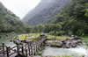 錦雞峽是黑山谷第一個峽谷,峽谷呈“V”型,全長360米,垂直高度近500米。兩側巖壁層層疊疊,山勢雄奇險峻,水流奔騰湍急,夾岸峰插云天。在峽谷內(nèi)的竹灌叢中常有中國特有鳥種(也是觀賞鳥)紅腹錦雞出沒。