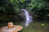雙龍戲珠是峽谷溪流中一塊天然形成的石頭,仿佛巨大的珠子將潺潺流水分成兩道,流水猶如兩條靈動的小白龍圍繞著龍珠嬉戲游玩,故名雙龍戲珠。