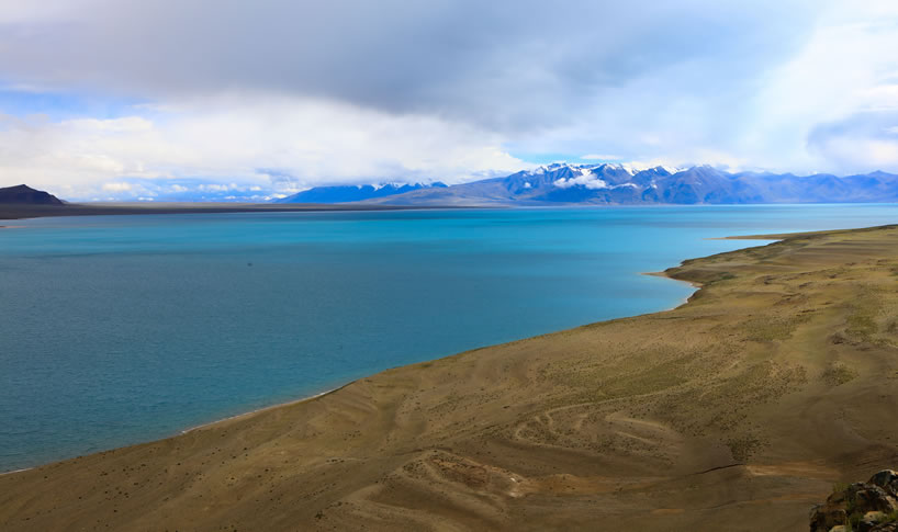 當(dāng)惹雍措,是西藏面積第四大湖,中國第二深的湖,是西藏最古老的雍仲本教徒崇拜的最大的圣湖。當(dāng)惹雍措為南北走向,形如鞋底的大湖泊,三面環(huán)山。唯南岸達(dá)爾果山東側(cè)有一缺口。達(dá)爾果山一列七峰,山體黝黑,頂覆白雪,形狀酷似7座整齊排列的金字塔。它和當(dāng)惹雍措一起被雍仲本教徒奉為神的圣地。湖邊的玉本寺是一座建于懸崖山洞的寺廟,據(jù)說為象雄雍仲本教最古老的寺廟之一。“達(dá)爾果”和“當(dāng)惹”都是古象雄語,意為“雪山”和“湖”,它們一個是神山,一個是圣湖, 公元五世紀(jì)以前,在世界屋脊的青藏高原,曾經(jīng)存在一個有自己的語言和文字,文明高度發(fā)達(dá)的古象雄王國。最輝煌的時候,象雄王國的疆域西起今阿里地區(qū)的崗仁波齊(上象雄),橫貫藏北的尼瑪、申扎一帶(中象雄),東昌都丁青一帶(下象雄),疆域極其遼闊,是青藏高原最早的文明中心。而這其中,中象雄的中心就位于達(dá)果雪山和當(dāng)惹雍措的附近。時日,人們?nèi)匀豢梢栽谶@里看到古象雄國王宮的遺址。