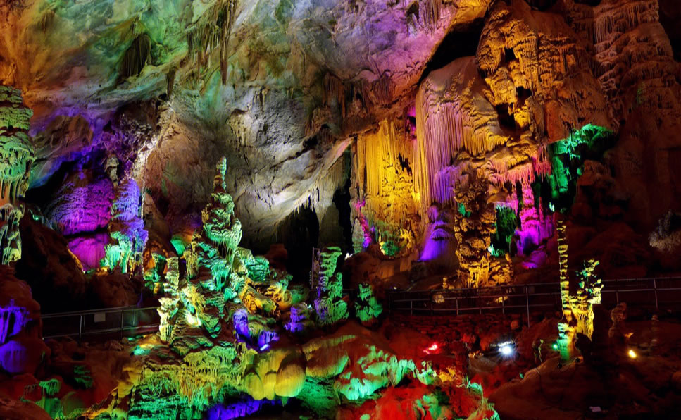 - 水晶森林:國內(nèi)罕見的純白鐘乳石群,燈光下如鉆石般閃耀,形成“非重力水沉積”奇觀。