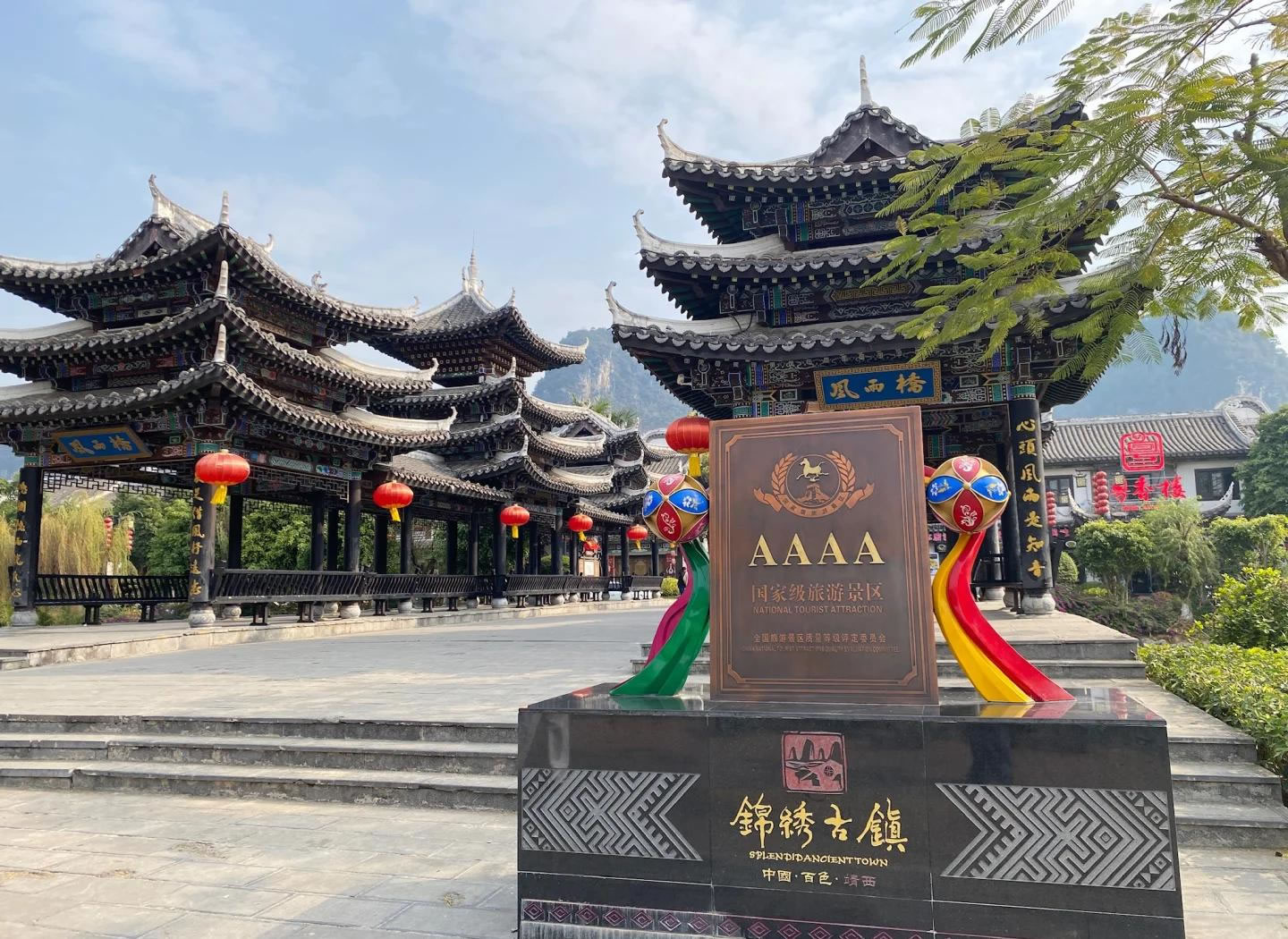 錦繡古鎮(zhèn),位于廣西壯族自治區(qū)百色市靖西市。古鎮(zhèn)一期工程于2018年12月26日正式開街,依托靖西山水資源和壯族文化,以復(fù)興城市文脈為主線,打造壯族文化傳承載體和旅游集散中心。項目涵蓋文化體驗(yàn)、休閑娛樂、餐飲住宿等功能,建筑融入燈籠、銅鼓等壯族元素,具有濃厚民俗特色。古鎮(zhèn)建筑融合壯族民俗元素,如雕梁畫棟、銅鼓、繡球等,分為文旅商業(yè)街區(qū)、小吃燒烤區(qū)、主題客棧區(qū)等。以壯族文化、邊境文化、生態(tài)養(yǎng)生為主題,提供“吃住行游購?qiáng)?rdquo;全方位體驗(yàn)。古鎮(zhèn)建成后素有“小桂林”之稱,描繪出小橋流水的壯鄉(xiāng)畫卷。