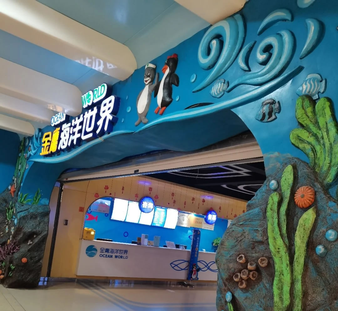 金鷹海洋世界位于鹽城市解放南路268號(hào)金鷹聚龍湖購(gòu)物中心負(fù)一樓,建筑面積約6000平方米,展示300余種、8000多尾水生動(dòng)物。場(chǎng)館設(shè)有亞馬遜叢林、海獅表演館等十一大主題展區(qū),提供海豹喂食、美人魚(yú)表演等互動(dòng)項(xiàng)目。