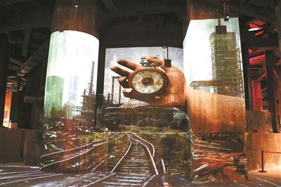 走進(jìn)三高爐,以爐芯為載體放映的數(shù)字片《致敬鋼鐵》,呈現(xiàn)出獨(dú)特的觀影效果。爐芯、墻壁、地面,瞬間變?yōu)槠聊,觀眾可360度沉浸在鋼鐵故事中,了解北京乃至中國(guó)鋼鐵工業(yè)發(fā)展有重要貢獻(xiàn)的“功勛高爐”的歷史。