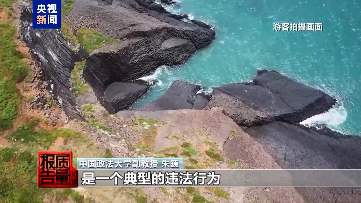 中國地質(zhì)大學(xué)(北京)地球科學(xué)與資源學(xué)院教授 張緒教:游客上島以后,他們攀爬到柱狀節(jié)理上邊,對(duì)柱狀玄武巖造成破壞,這種物理破壞是不可逆的。