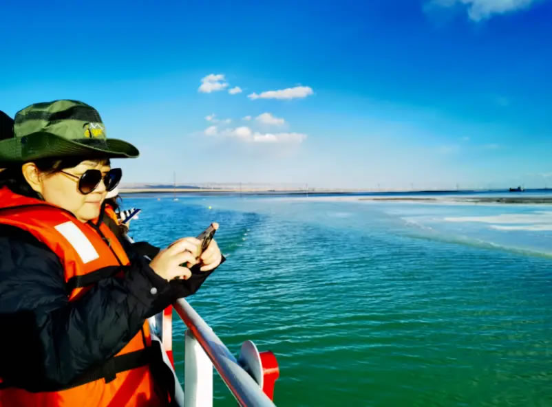 10月14日,由中共海西州委宣傳部主辦、西海都市報(bào)社承辦的“紅杞風(fēng)光別樣美 ”活動(dòng),走進(jìn)海西蒙古族藏族自治州烏蘭縣,研學(xué)團(tuán)隊(duì)來到茶卡鹽湖,乘坐游船觀光,湖面上駛來的大型運(yùn)鹽船讓外省記者及學(xué)生不由感嘆:沒想到“天空之鏡”還有另外一種獨(dú)特景致。湖面上駛來的大型運(yùn)鹽船吸引了研學(xué)團(tuán)隊(duì)成員的目光。采鹽船正在鹵水中作業(yè),發(fā)出低沉的轟鳴,空氣中彌漫著咸潤的氣息。研學(xué)的同學(xué)通過實(shí)地觀察鹵水的蒸發(fā)、結(jié)晶過程,將課本上的地理、化學(xué)知識(shí),與這片壯麗的現(xiàn)實(shí)場景融會(huì)貫通。