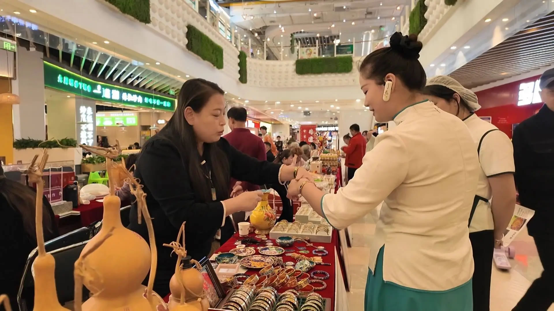 活動當(dāng)天,永旺商場地下一層變身為一處充滿傳統(tǒng)文化韻味的開放式“非遺市集”。雕刻鼻煙壺、景泰藍(lán)、面塑以及尹祥記純手工糕點(diǎn)等22種非遺齊聚一堂。市民們穿梭于市集之間,不僅可以欣賞精妙的非遺技藝,還能現(xiàn)場選購,沉浸式感受非物質(zhì)文化遺產(chǎn)的獨(dú)特魅力。