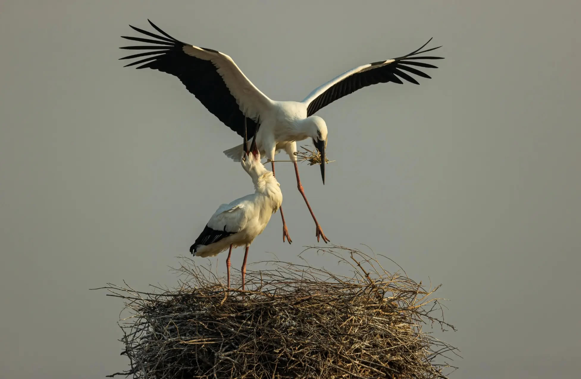 銜枝筑巢的東方白鸛(國(guó)家林業(yè)和草原局供圖)