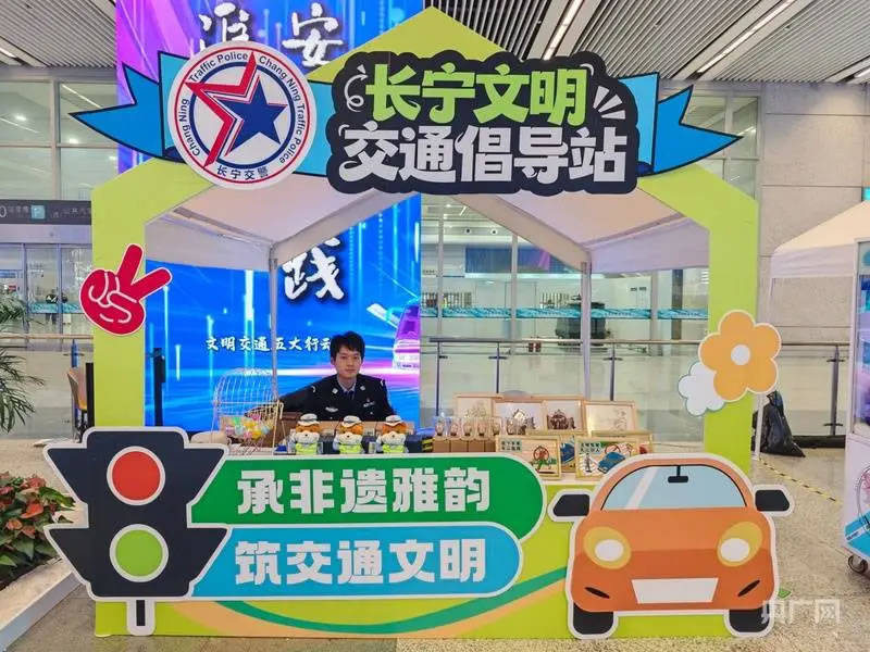 啟動儀式后,現(xiàn)場設(shè)置的多個互動體驗區(qū)吸引了大量市民駐足參與。文明交通游戲互動區(qū)融合了快樂大轉(zhuǎn)盤、抓娃娃機、交通標(biāo)識猜謎等趣味項目;交通科技體驗區(qū)則展示了包括高科技警用設(shè)備、警用無人機、安全駕駛AR模擬、酒駕測試眼鏡在內(nèi)的先進裝備,讓市民直觀感受科技賦能交通管理的成效。文明實踐快閃店集中呈現(xiàn)了虹橋機場、虹橋火車站等窗口單位在文明實踐中的創(chuàng)新成果。
