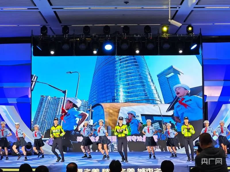 活動現(xiàn)場,上海市文明交通主題新時代文明實踐陣地正式發(fā)布。全市16個區(qū)將圍繞文明交通宣傳,打造一批具有區(qū)域特色的宣傳窗口,使之成為傳播文明理念、培育文明習(xí)慣的重要平臺。由上戲附屬浦東新世界小學(xué)、交警東方明珠中隊、上海市群星職業(yè)技術(shù)學(xué)校聯(lián)袂獻上的原創(chuàng)歌舞表演《上春山》,將藝術(shù)與文明主題巧妙融合,展現(xiàn)了新時代上海市民的蓬勃朝氣與文明風(fēng)采。