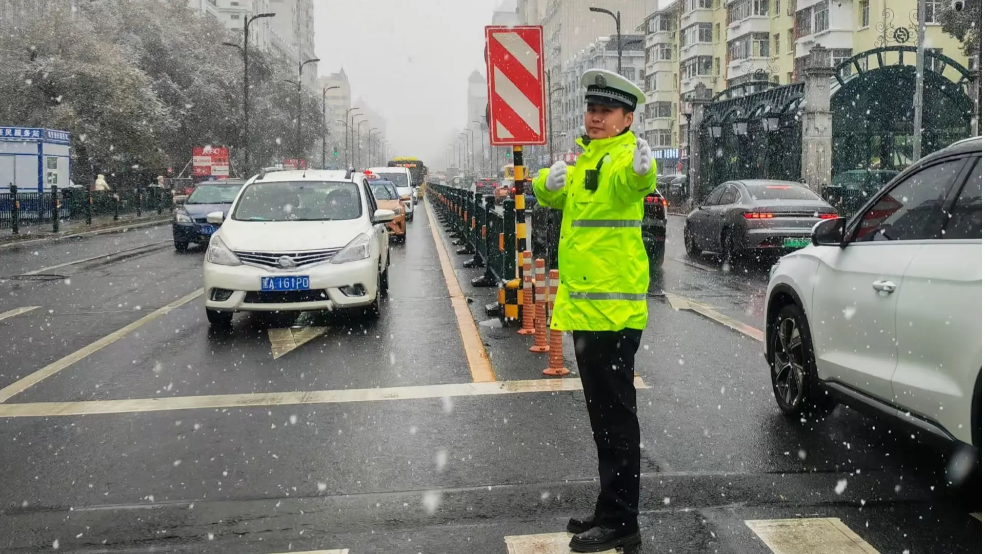 交警指揮交通(哈爾濱市公安局交警支隊供圖)