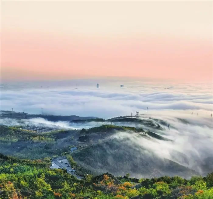 11月8日,立冬后的一場降雨,太原上空出現(xiàn)大面積云海景觀,整個城市在云海中若隱若現(xiàn),市民在太原西山萬畝生態(tài)園記錄下了這一自然奇景。