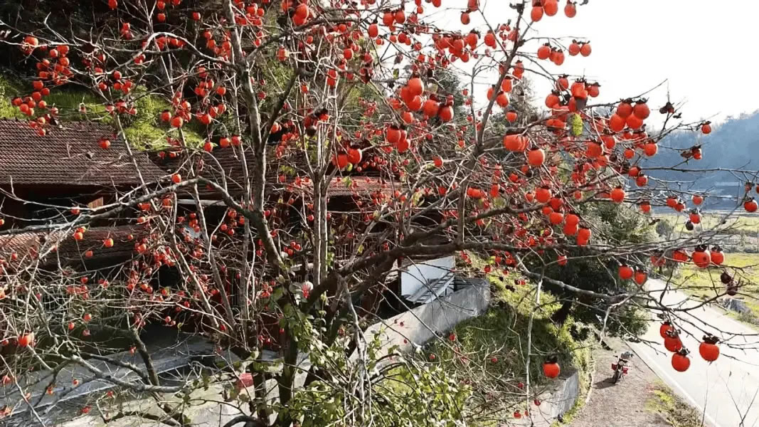 樂安鋪鄉(xiāng)聯(lián)豐村的山林同樣熱鬧非凡,蜿蜒山路旁的槭樹、楓香樹層層疊疊,紅褐與金黃交織成絢爛色塊,與錯落分布的農(nóng)家院落相映成趣。隨著初冬的寒意悄然降臨,聯(lián)豐村的柿子樹“燃”起一片熱烈的“紅火”,熟透的柿子,宛如一盞盞喜慶的紅燈籠,將山村裝點得明艷動人,在陽光輕撫下,橙紅的柿子透著誘人光澤,與遠處的山林相襯,色彩斑斕。游客們或手持相機,定格“柿”景,歡聲笑語在鄉(xiāng)村回蕩。引得游人紛至沓來,沉醉于這獨特的田園冬韻之中。