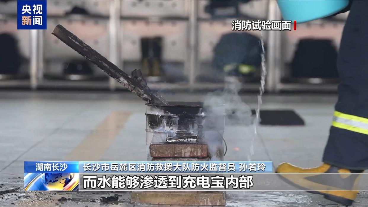 長沙市岳麓區(qū)消防救援大隊(duì)防火監(jiān)督員 孫若玲:干粉滅火器的滲透性和降溫效果比較差,在應(yīng)對(duì)充電寶著火時(shí)效果并不理想,而水能夠滲透到充電寶內(nèi)部,有效滅火并起到降溫作用。
